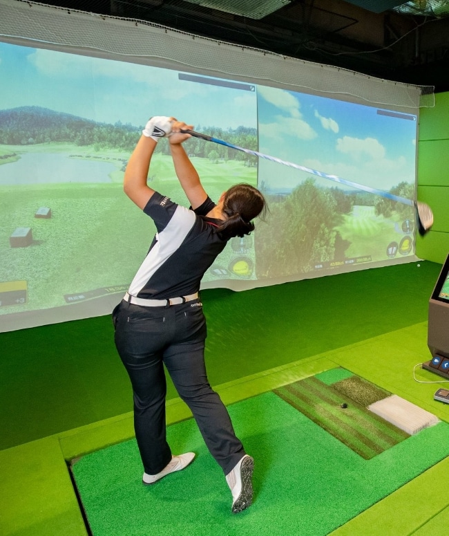 がむしゃらにボールを打つ練習ではなく、映像や数値をみながら効率よく練習ができるので、レッスンの際には常に『GOLFZON』を活用して、番手ごとの平均飛距離やフェードドローなどの球筋を正確に確認しています。